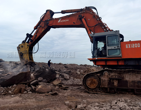 高頻破碎錘改變了使用活塞沖擊式的破碎原理,與破碎錘相比,有效的避免了黑油或因金屬碎屑對挖掘機液壓系統的損傷,并通過合理的機械結構有效的避免了錘體自身對挖掘機大、小臂所產生的傷害。